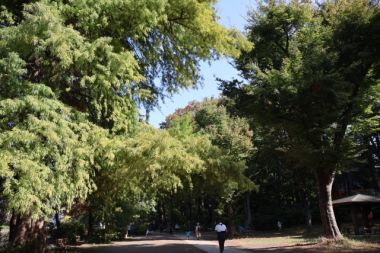 御苑内には東西に横切る幅広い砂利道があり、そこで西の空を見上げれば高確率で美しい夕焼けを楽しめます。