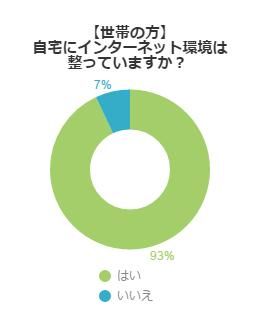 アンケートの結果、自宅のインターネット環境が整っていると回答した人は約9割という結果になりました。